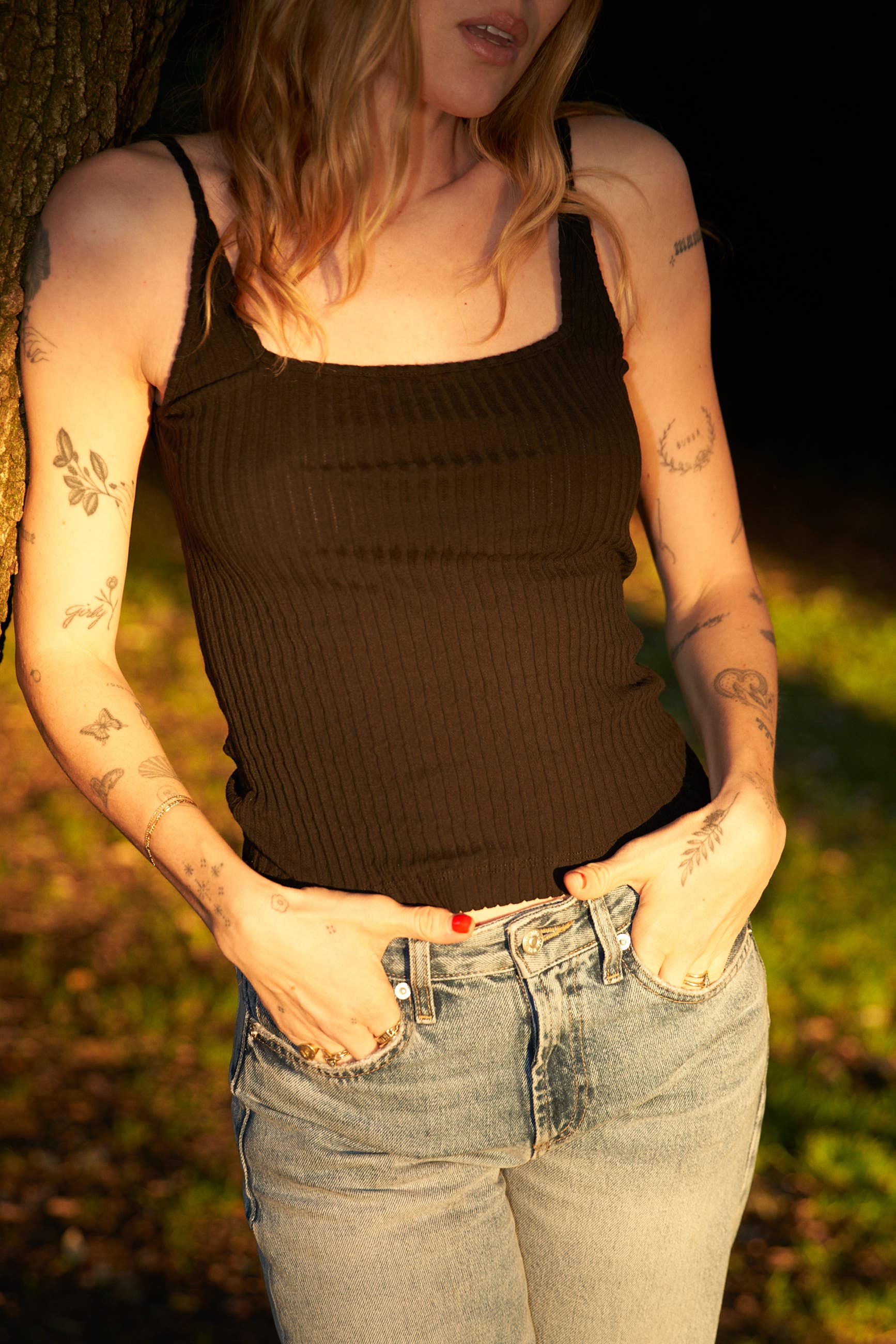 Sweet square neck camisole made of a vintage-inspired 'poorboy' pointelle rib. Details: - Organic cotton pointelle knit. - Garment washed for softness and to remove shrinkage. - Thick ribbed texture.