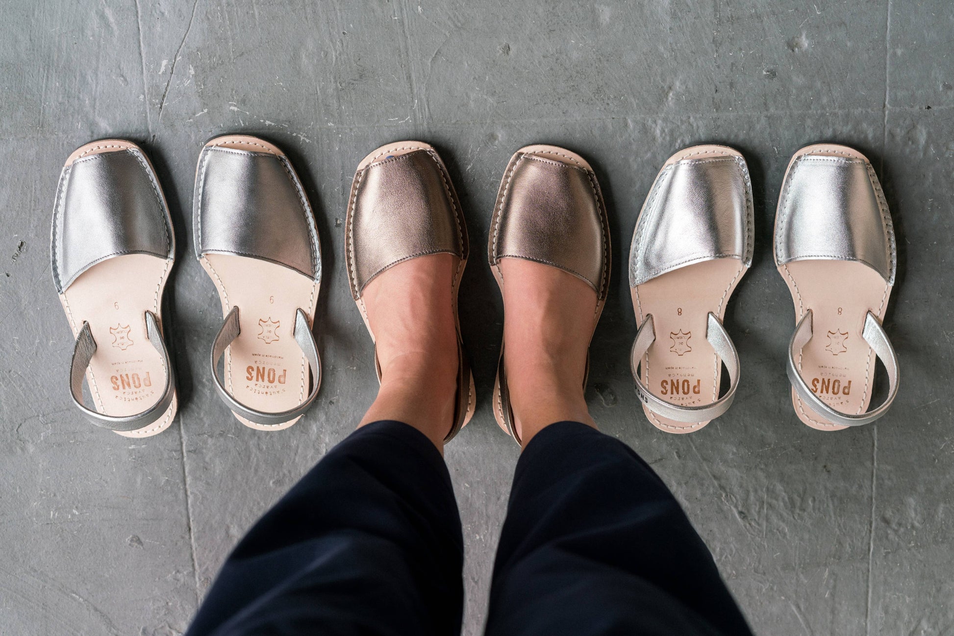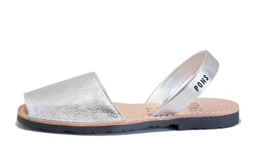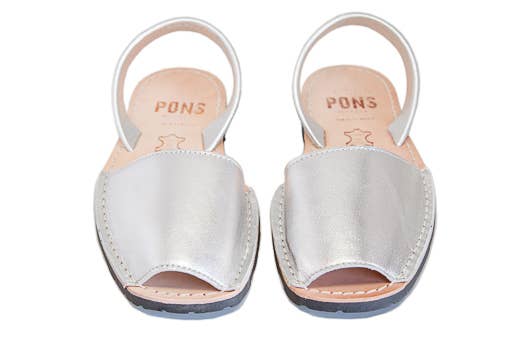 Our women's classic pons avarcas in metallic silver can seamlessly fit into any wardrobe. Our pons sandals are produced with high-quality natural leather, have a lightweight rubber sole, and each pair are ethically handmade on the Spanish island of Menorca.