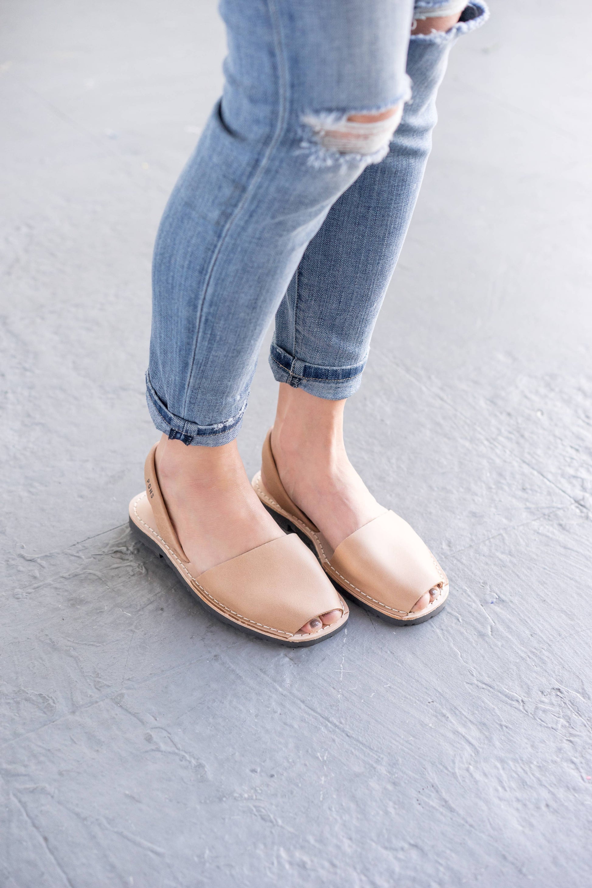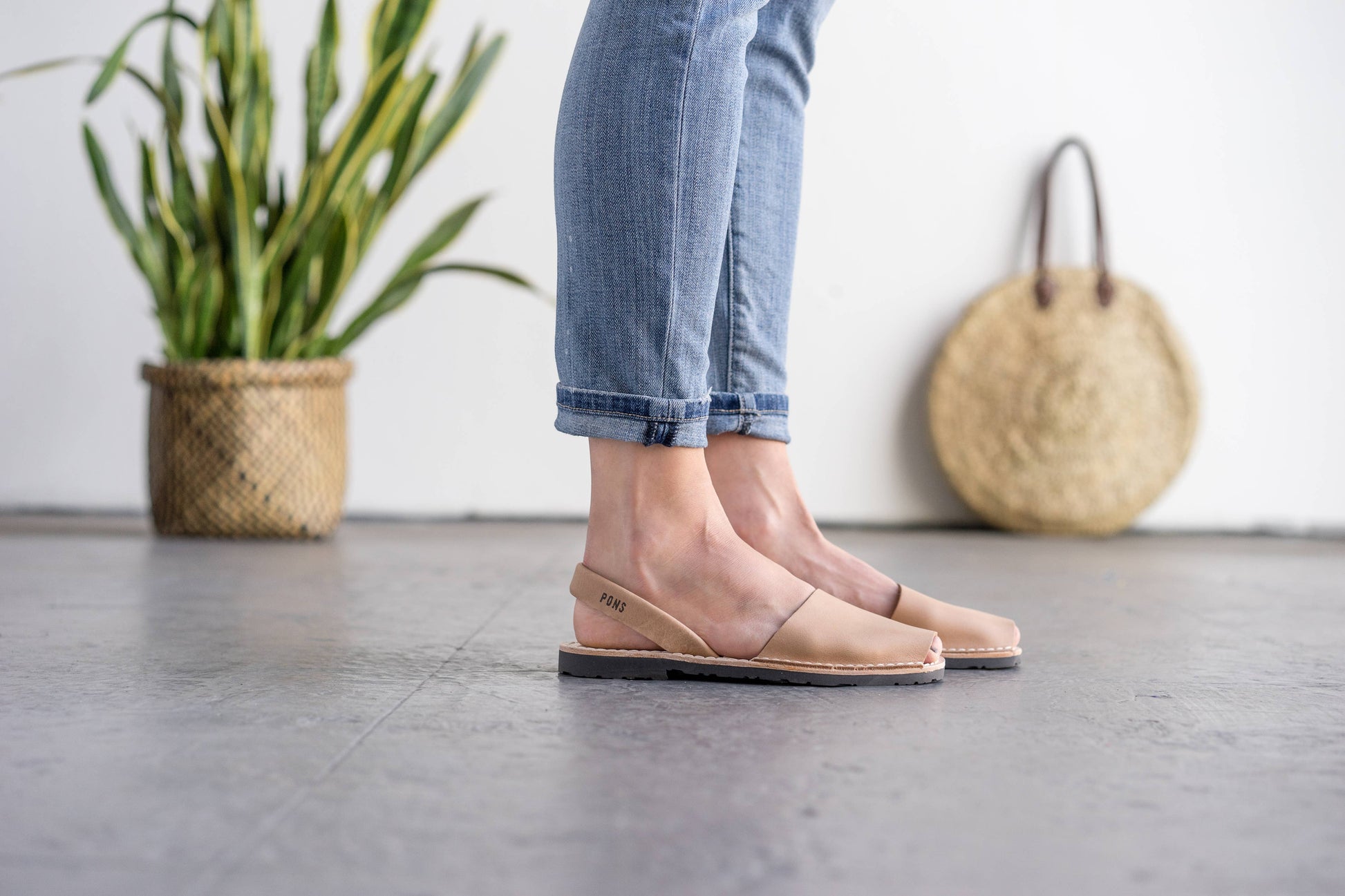 A wonderful balance of our taupe & sand colors, our women's classic pons avarcas in tan also have a warm undertone that can't help but remind us of lying out under the Mediterranean sunshine. These shoes are ethically handcrafted by local artisans who have been practicing the art of shoemaking for most of their adult lives. The materials are sustainably and locally sourced mostly from Menorca, where the shoes are handmade with love.
