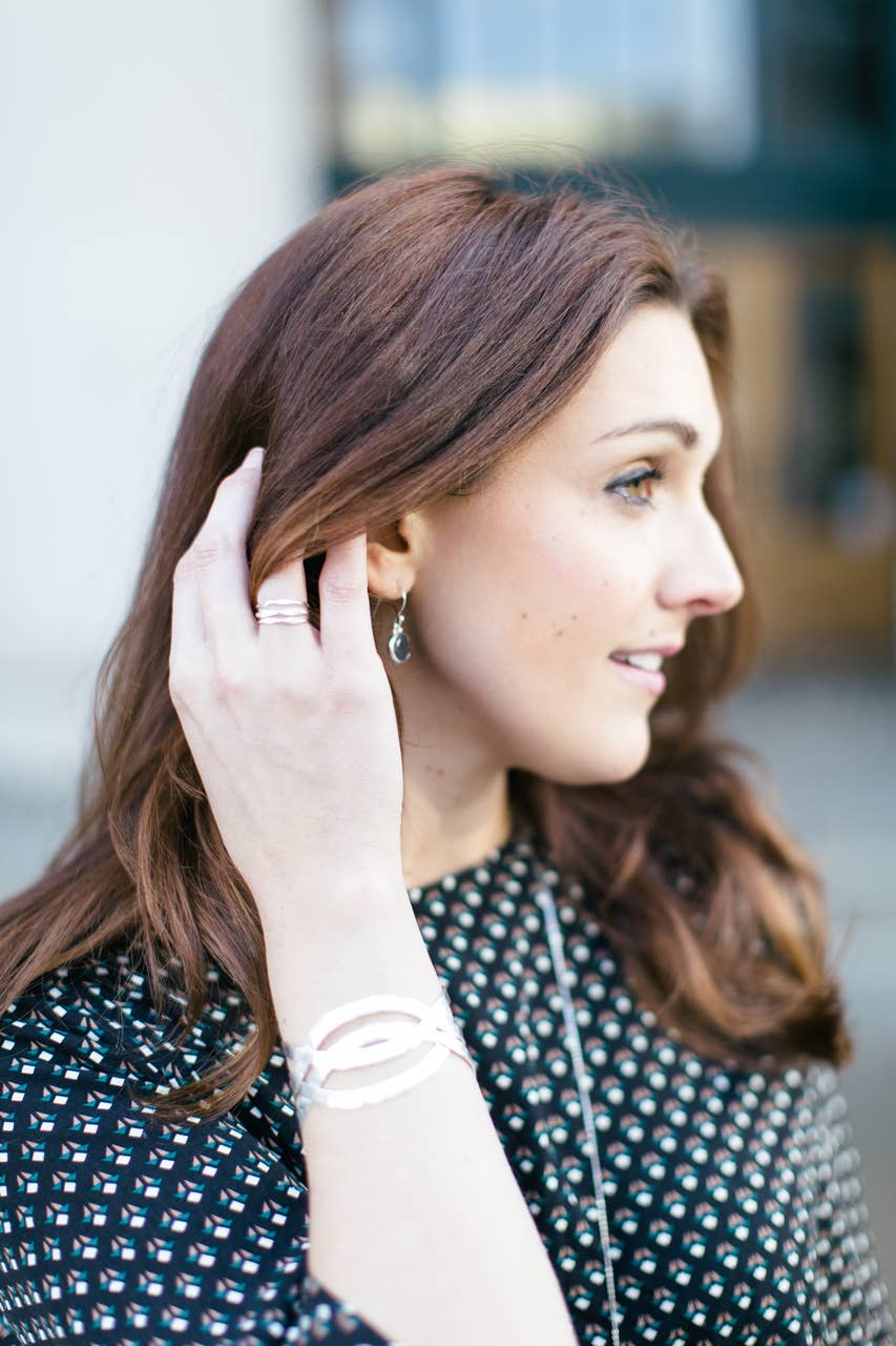 These earrings look dainty but were made by women of great talent in India. Wear these sterling silver and labradorite earrings to remind you to take time for reflection. Sterling silver and semi-precious labradorite stone. Made fair trade by women in Mumbai, India. Portions of this product are made using recycled materials.