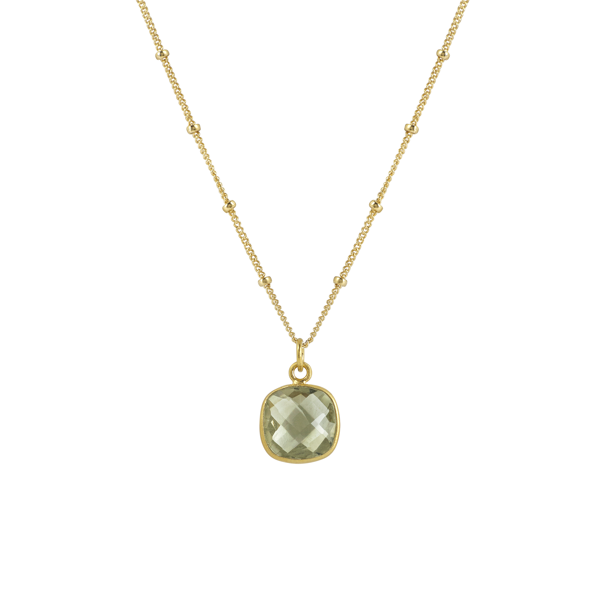 AMET- Square Faceted Green Amethyst Necklace in Silver or Vermeil