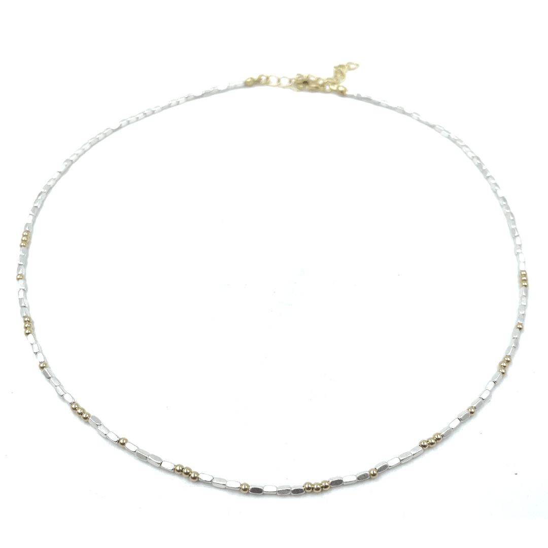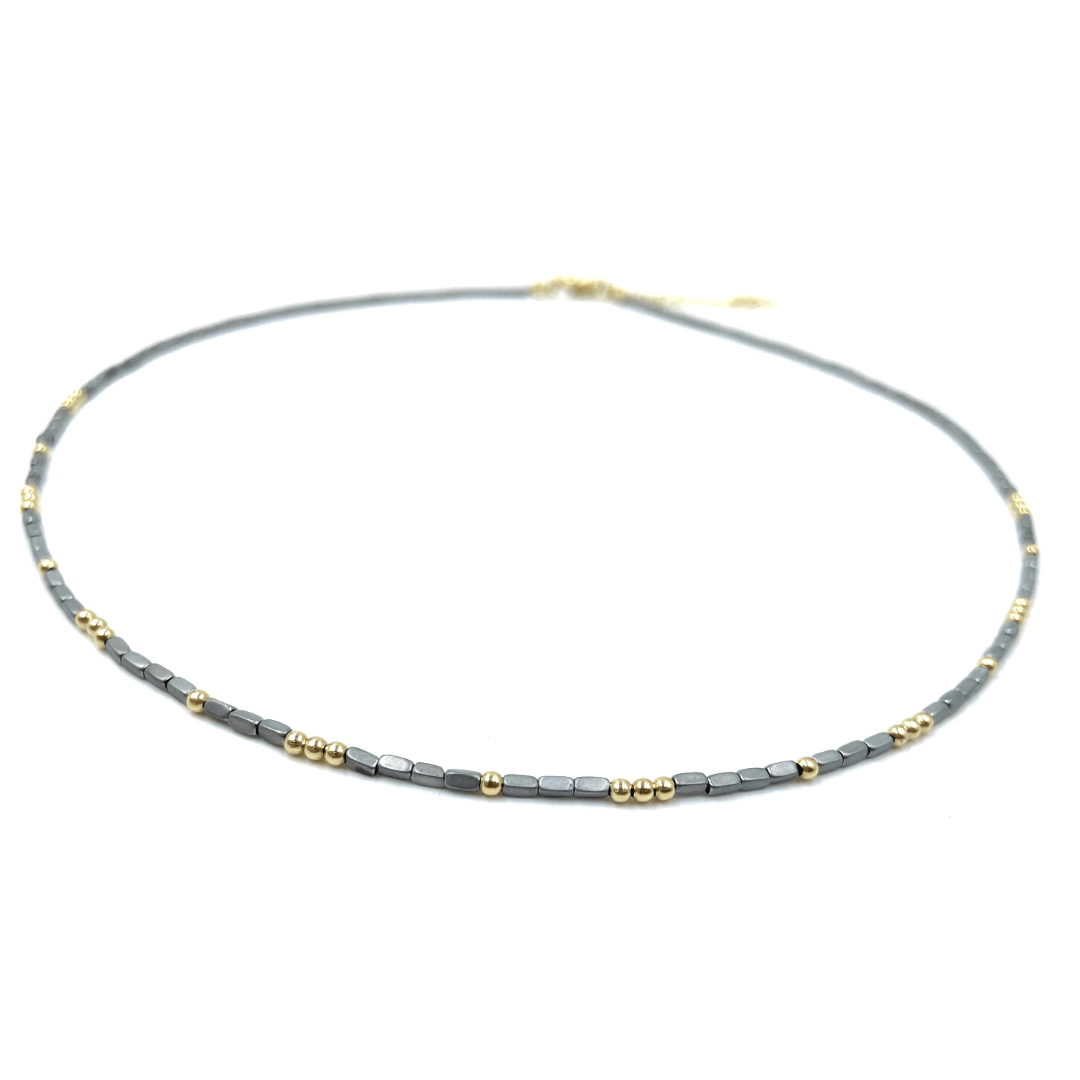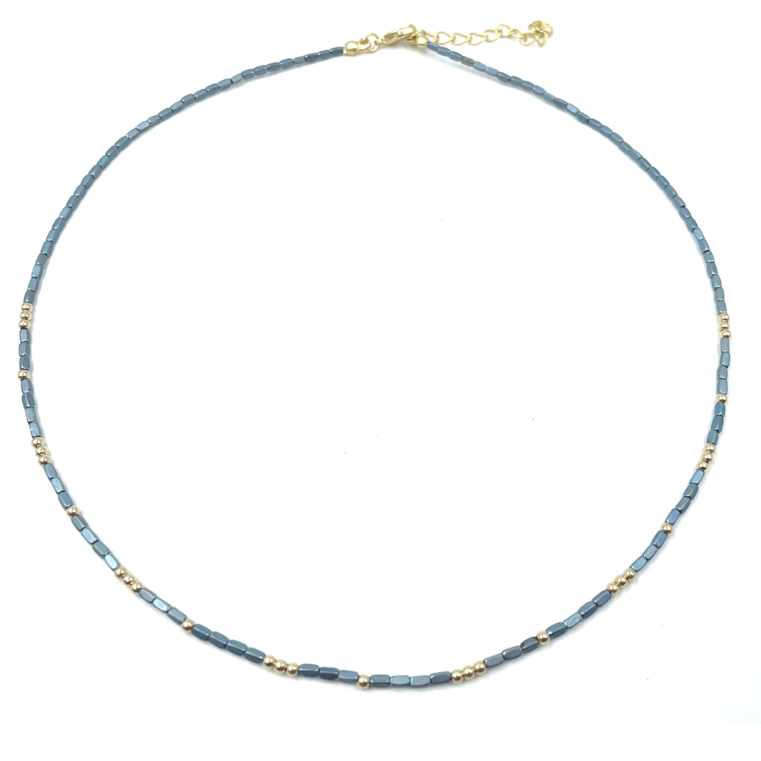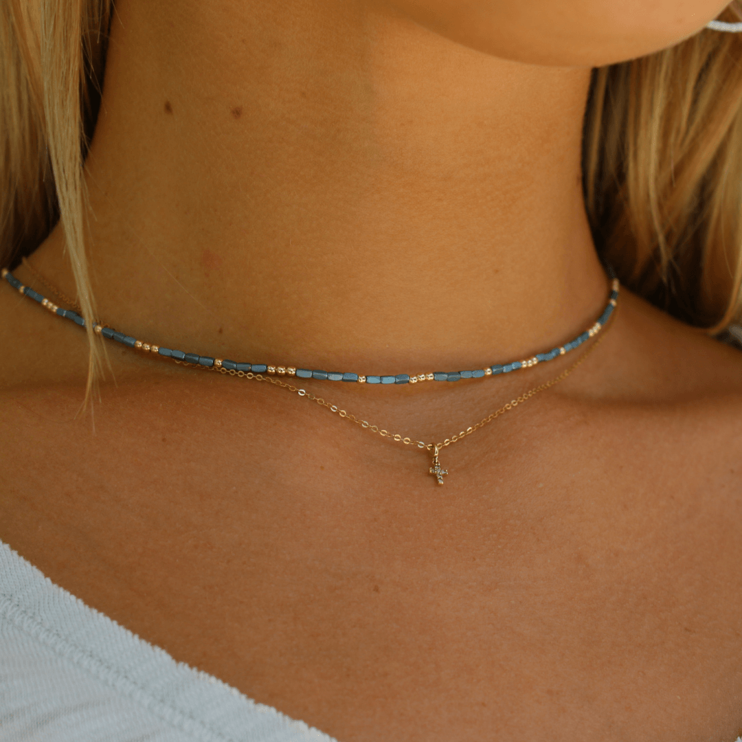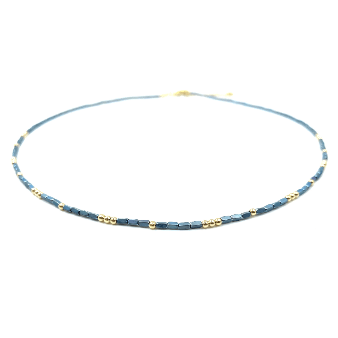 Delicate, inspirational, colorful, and perfect to layer. Our Harbor Collection necklace has small oval beads strung together and dotted with 14k gold filled (and waterproof!) beads around, creating your new wear-and-love-every-day necklace! Our adjustable closure is 16-18 inches. Available in dark gray, silver white, blue, and gold.