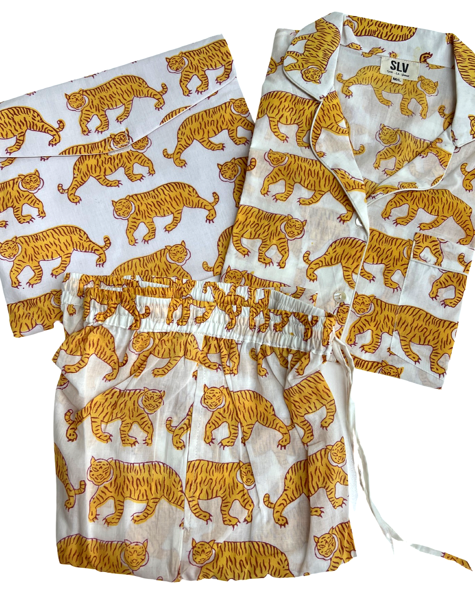 Breathe new life into your pajama line-up with our cheery hand blocked lounge sets. Our long sleeve button down top along with matching pants are a dream to slip into at the end of a long day or while you sip your coffee on a Sunday morning. Instant mood brightener! * Elastic waistband * Camisole top with adjustable straps * Handblocked * Handmade in India SIZING * XS/S * M/L MATERIAL 100% Cotton CARE Machine Wash cold. Hang dry. Fluff for softness once dry.