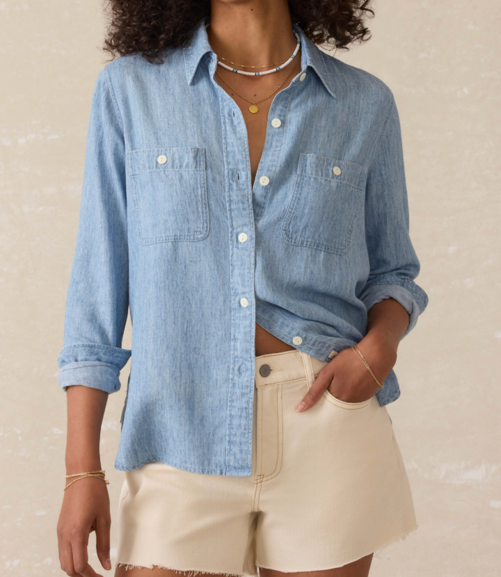 Think of a classic chambray shirt, but super light and super soft. We updated ours in a Tencel and linen blend for the softest hand feel and improved breathability. With classic work shirt styling, this button down is a must-have for any casual-cool wardrobe.