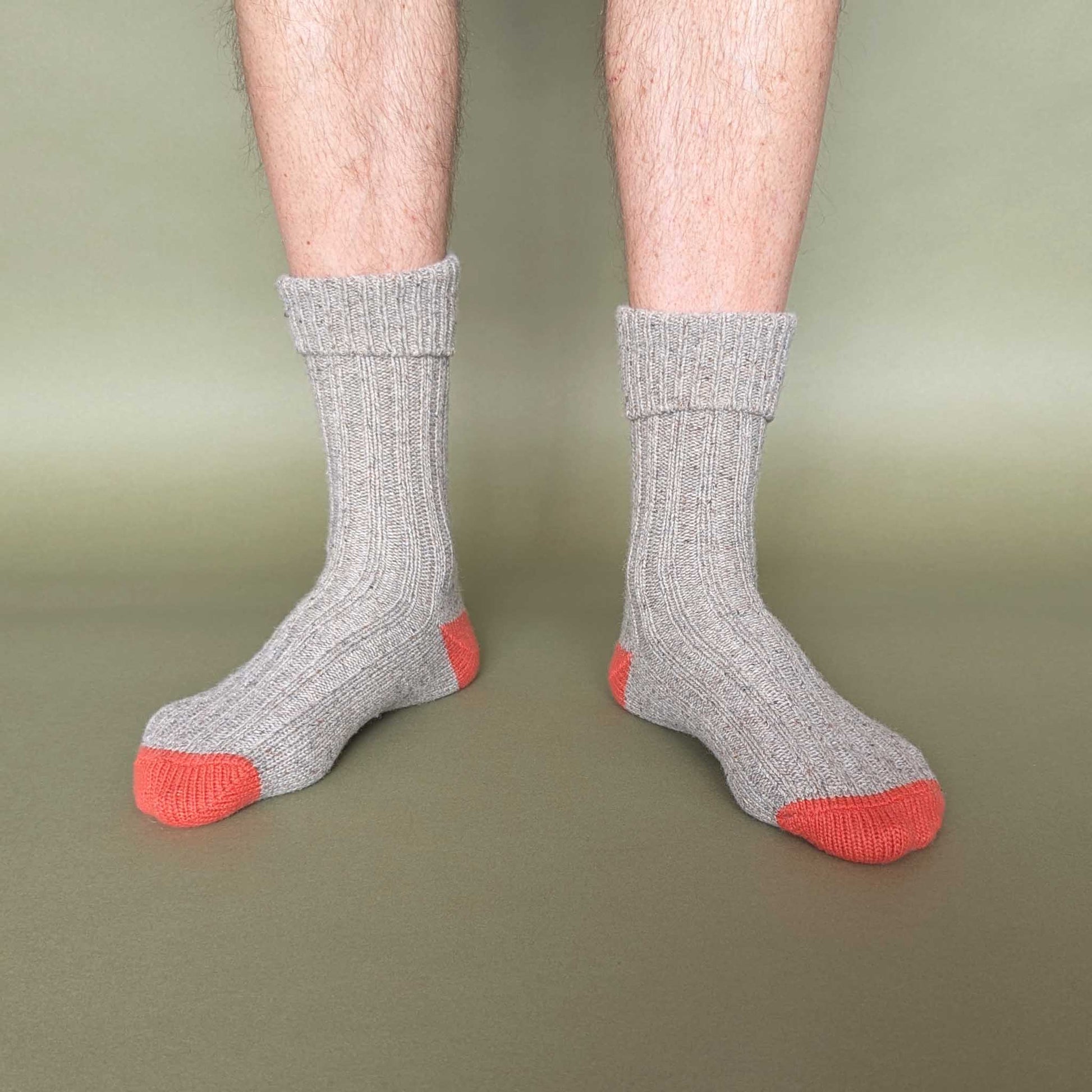 These cosy, thick, recycled lambswool & silk blend socks are ideal for lounging at home but can also be worn in boots. Our bestsellers in 2024