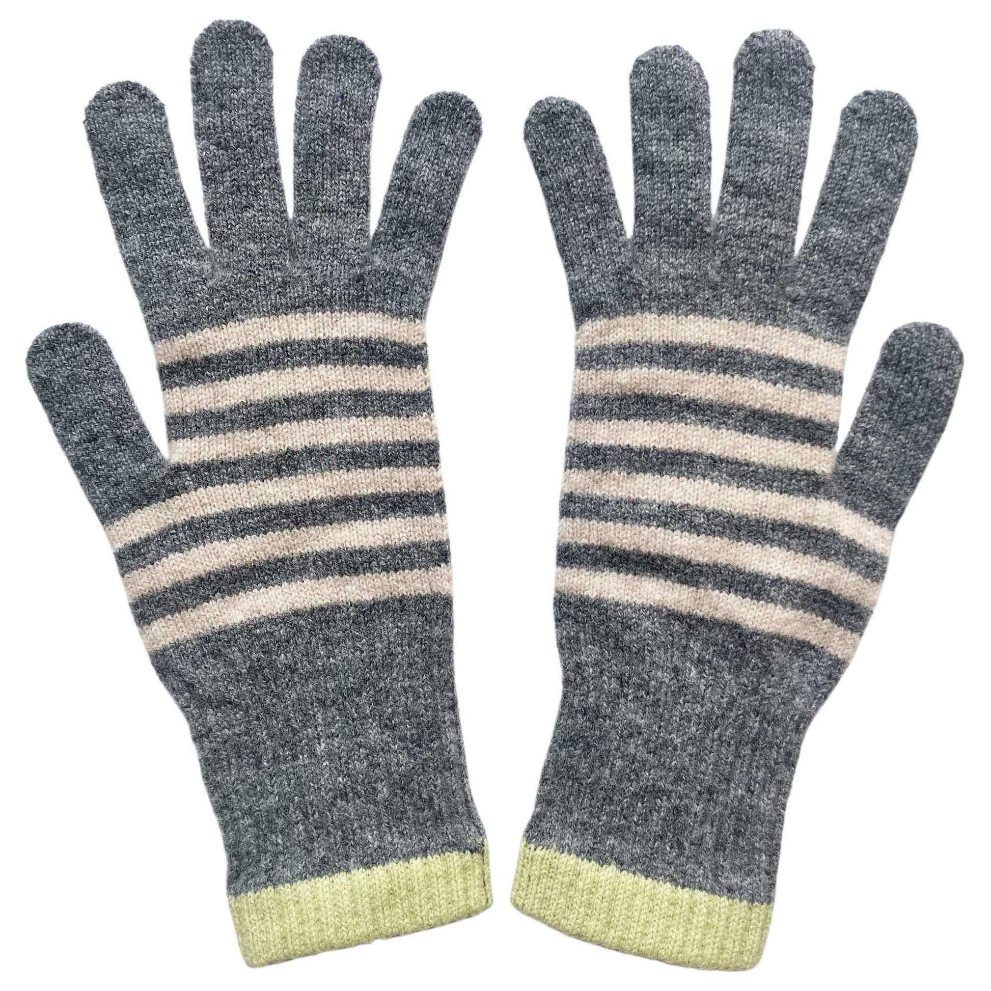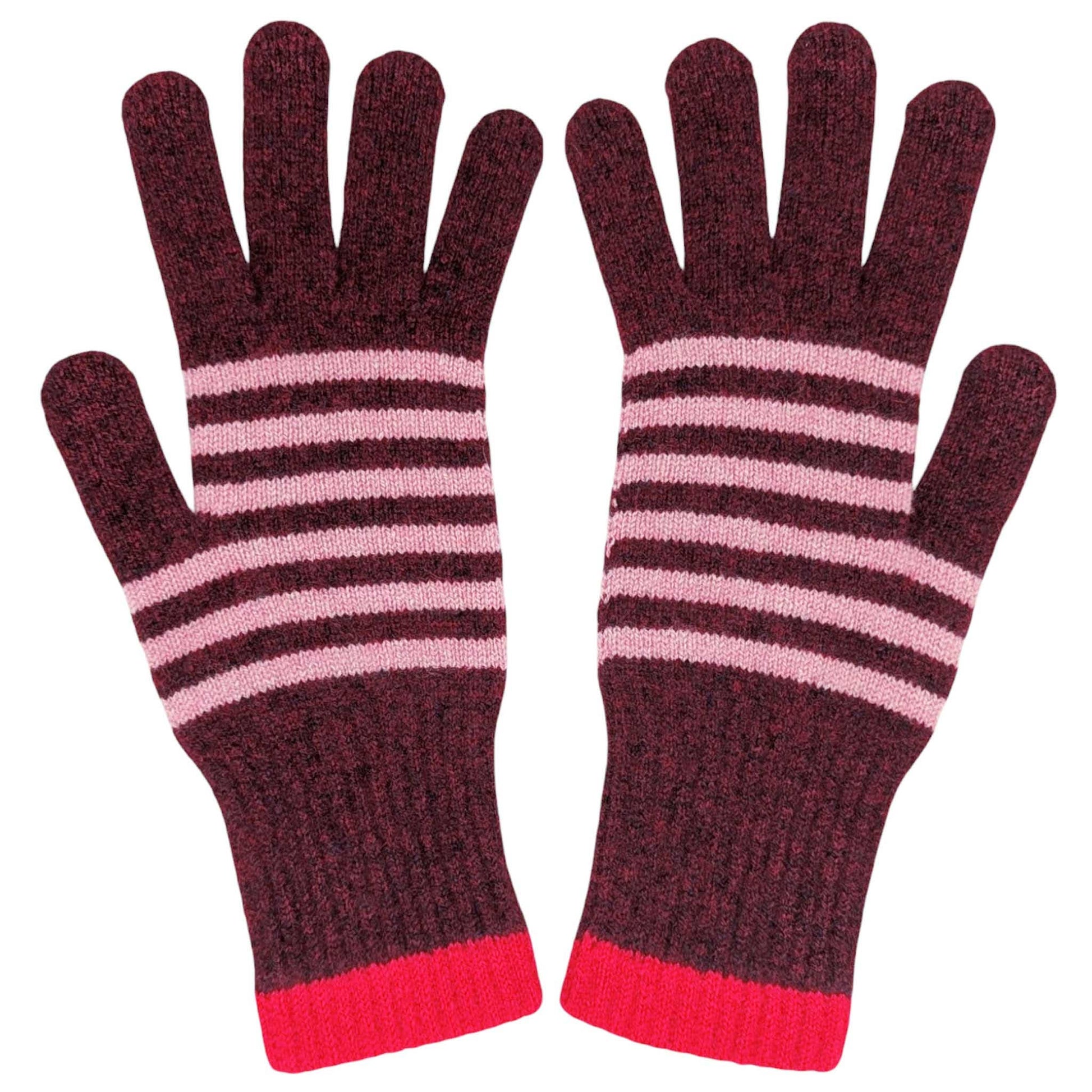 Colourful and cosy Merino lambswool gloves expertly knitted in Scotland. Women's one-size fit across the range Gloves - top to bottom 30cms / 12" x width 10cm / 4" Hand wash or dry clean only Matching hats and scarves are available.