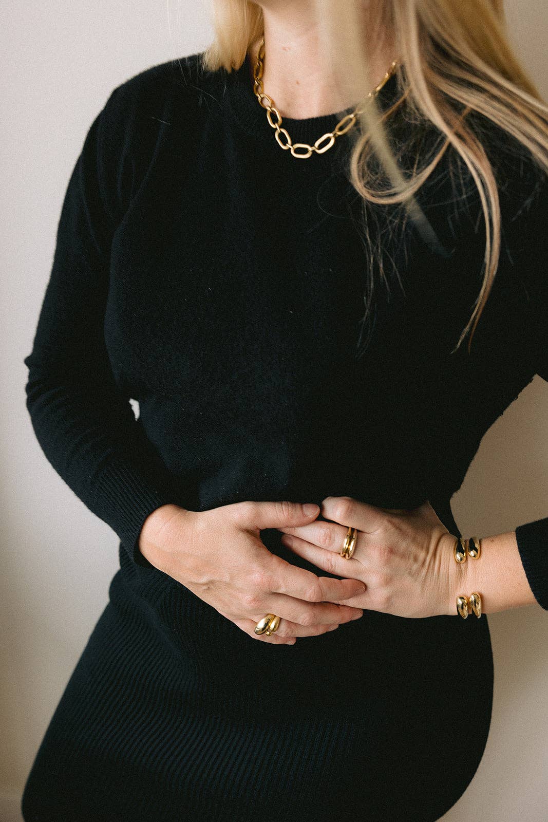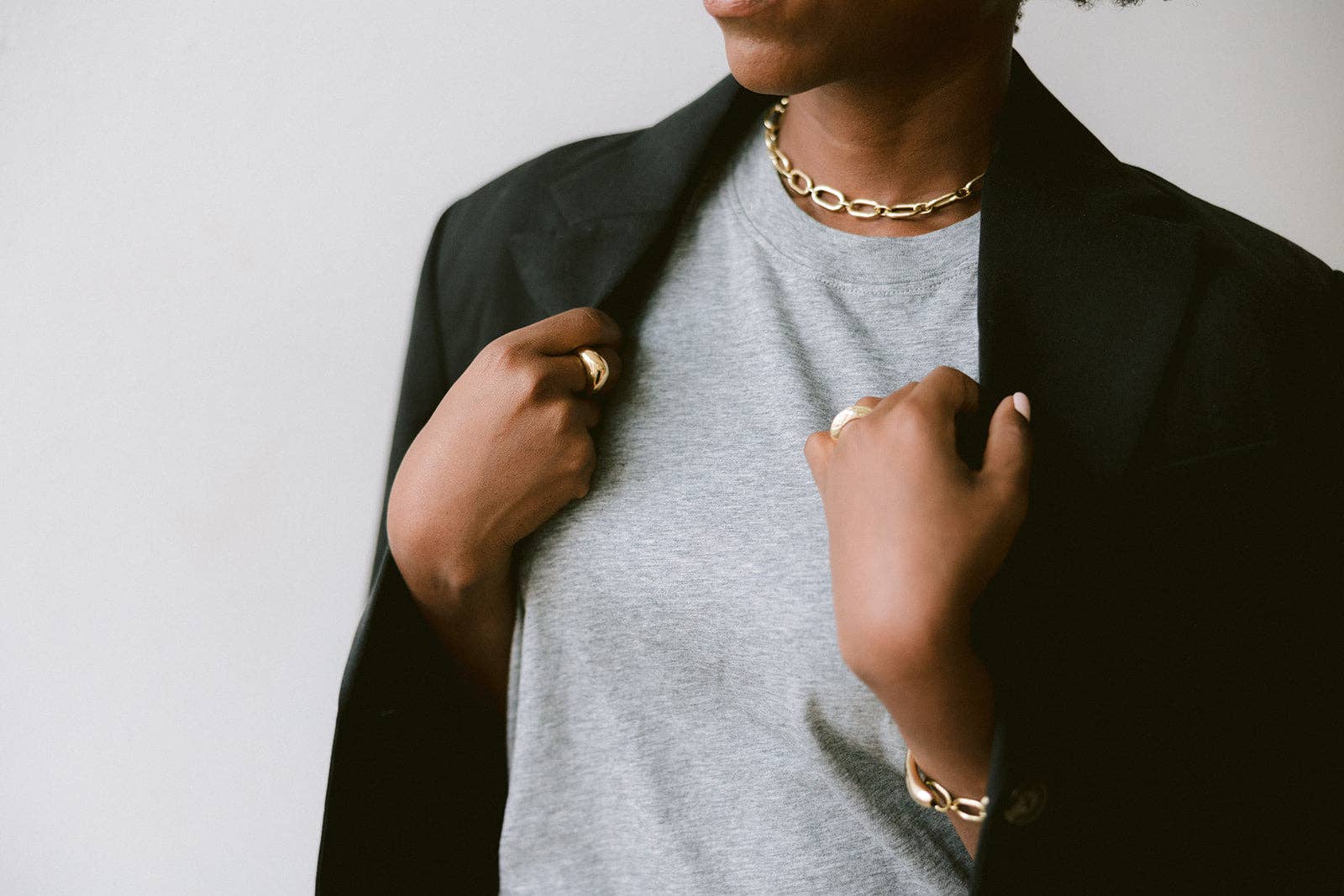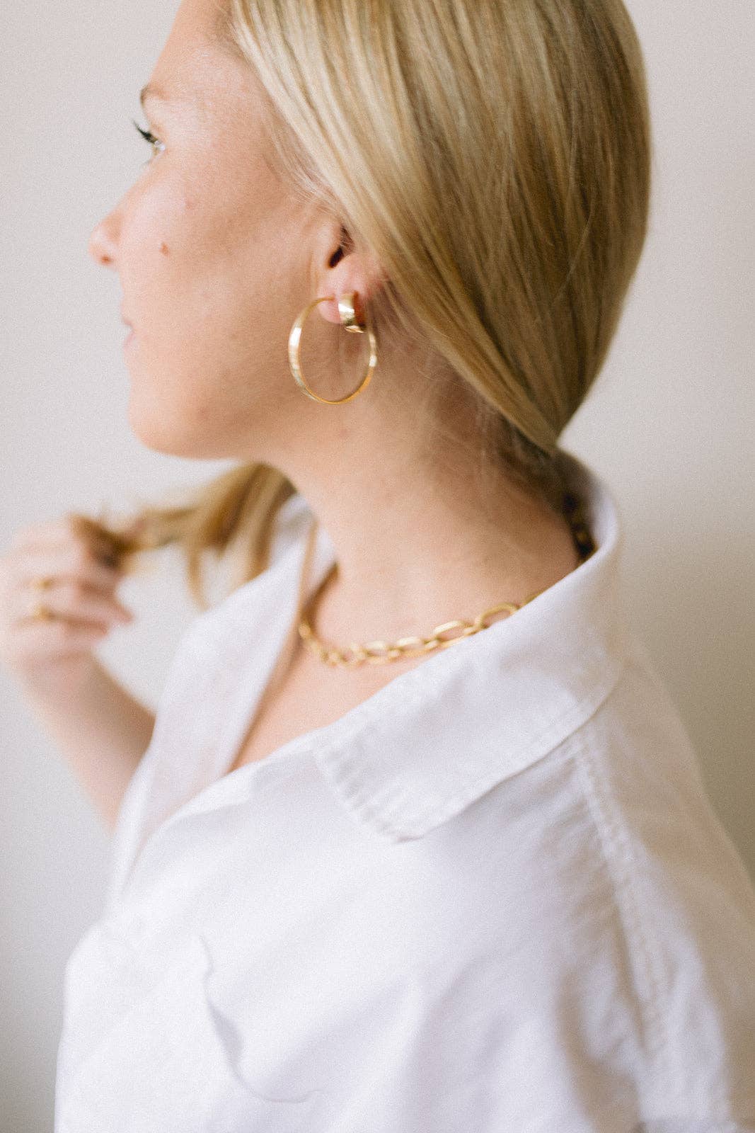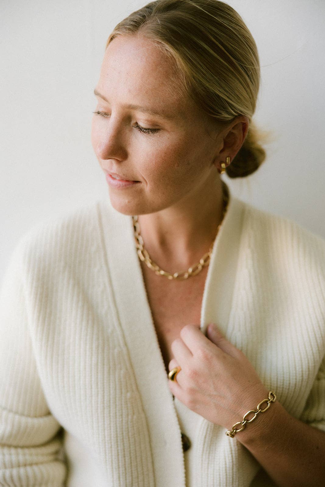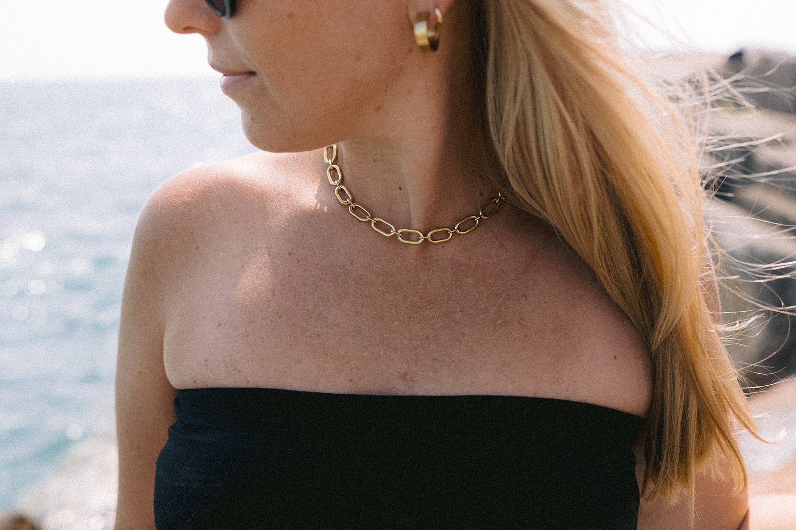 A classic 18" chain link necklace with a hook closure. Adjustable in that you can hook the closure to any link. Connect the necklace to the Zoe Bracelet for a longer chain and endless length and styling possibilities.